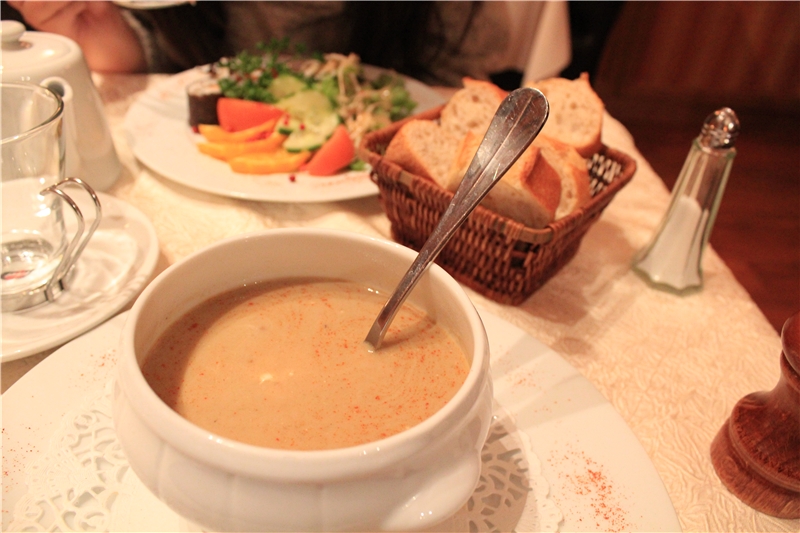 汤里边还有一粒鸡蛋呢,很多餐厅都这样,估计这是法国汤的特点?