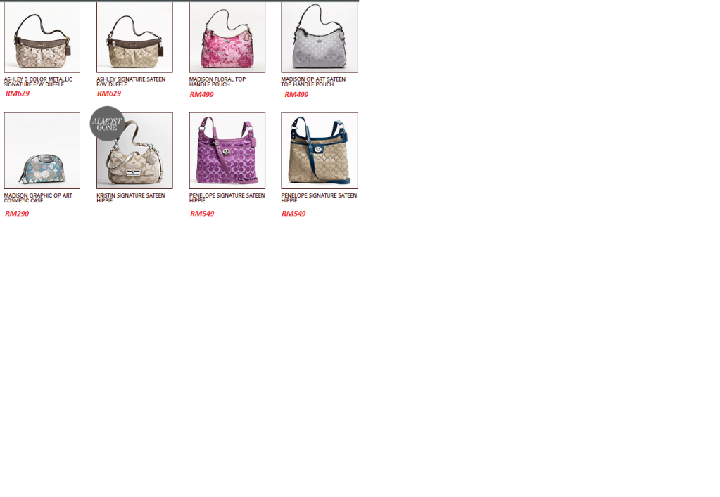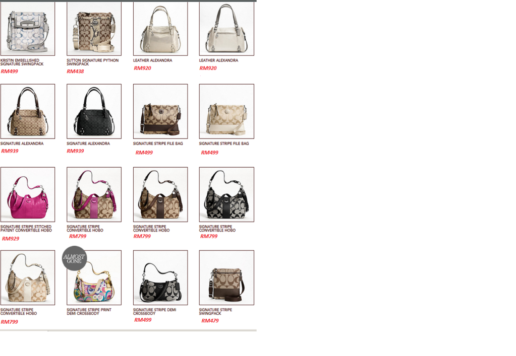 我的COACH是US Factory outlet 那里购买的,所以不是每款都有。。。 可是一定是100%正品!请放心!