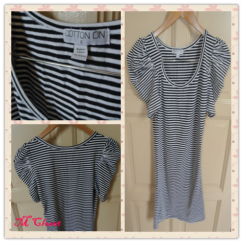 Cotton On 横条纹长版泡泡袖上衣 (商品编号:B08)