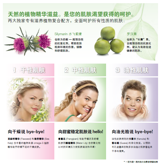 有了Botanical Effects™ 护肤品,这个简单的方案注入了天然植物精华,贴适您的肌肤性质,让肌肤焕发健康亮丽光泽。