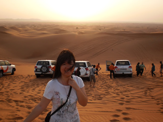 坐在四轮驱车里,在沙漠中的路途真的很刺激!车子一直都在goyang-goyang的,甚至很多次司机特意从高处冲下去~ wow!如果有机会,我还想再去!