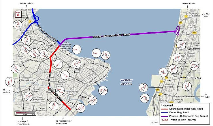 耗 资63亿令吉的“两岸三通,一个槟城”计划共有4项工程,包括12公里,4条车道的丹绒武雅至直落巴巷平行公路,预计2018年竣工、4.6公里,从亚依 淡至敦林苍祐医生大道的快速大道和一条绕道,预计2019年竣工、4.2公里,从新关仔角至敦林苍祐大道的快速大道,预计2022年竣工以及6.5公里的 海底隧道,从槟岛的新关仔角衔接至威北的峇眼阿占,预计2025年竣工。