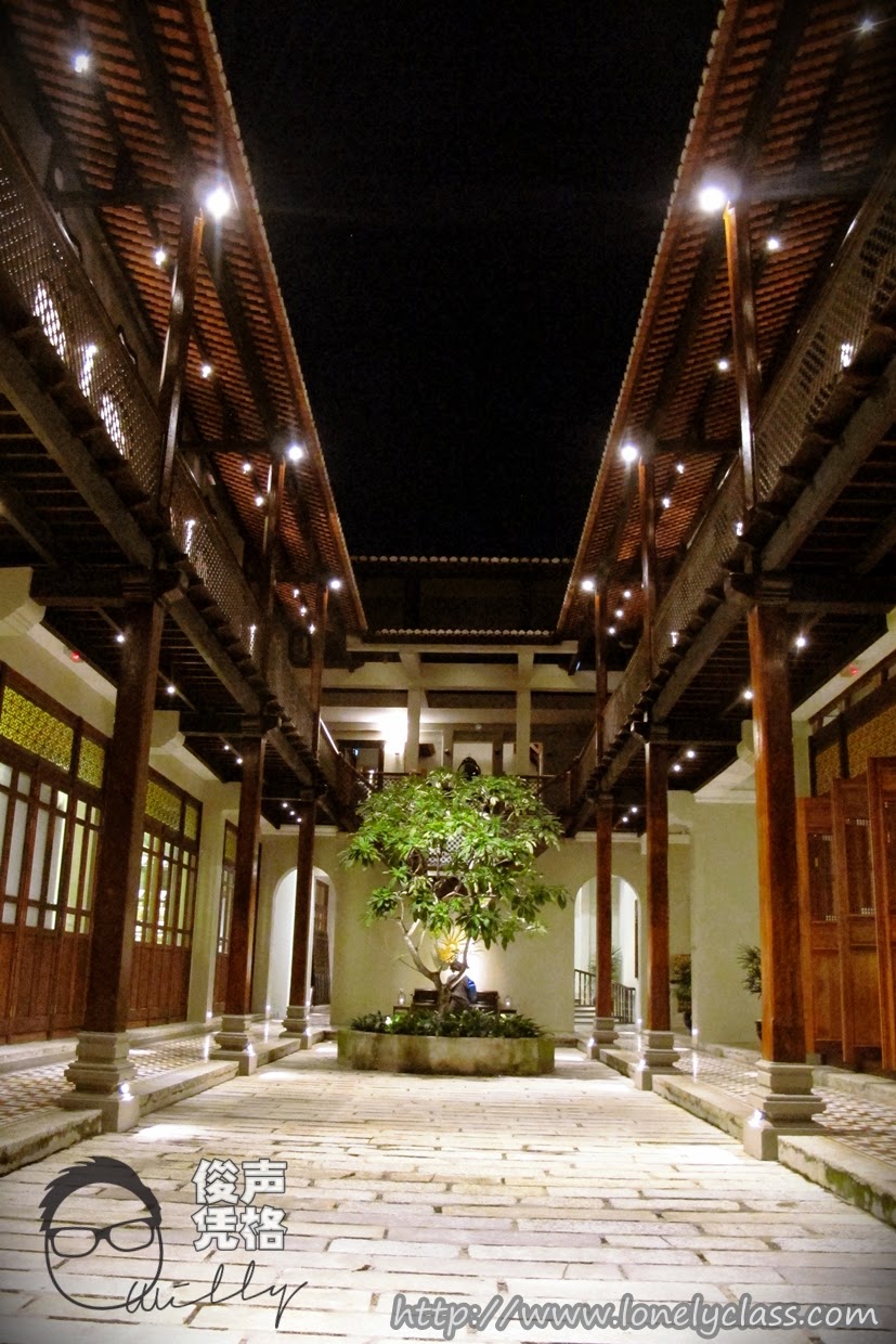 从外观上看来是排屋的老厝,原来内有乾坤。里头是一个长形的四合院格局,没有太过花巧的雕梁画栋,也没有大红灯笼高高挂的场面,只有一些雕花嵌饰,一切简单但却显高贵,建筑物的古色古香,令人赏心悦目。老厝的上方有18间客房,而下方则为餐厅和酒店大厅。