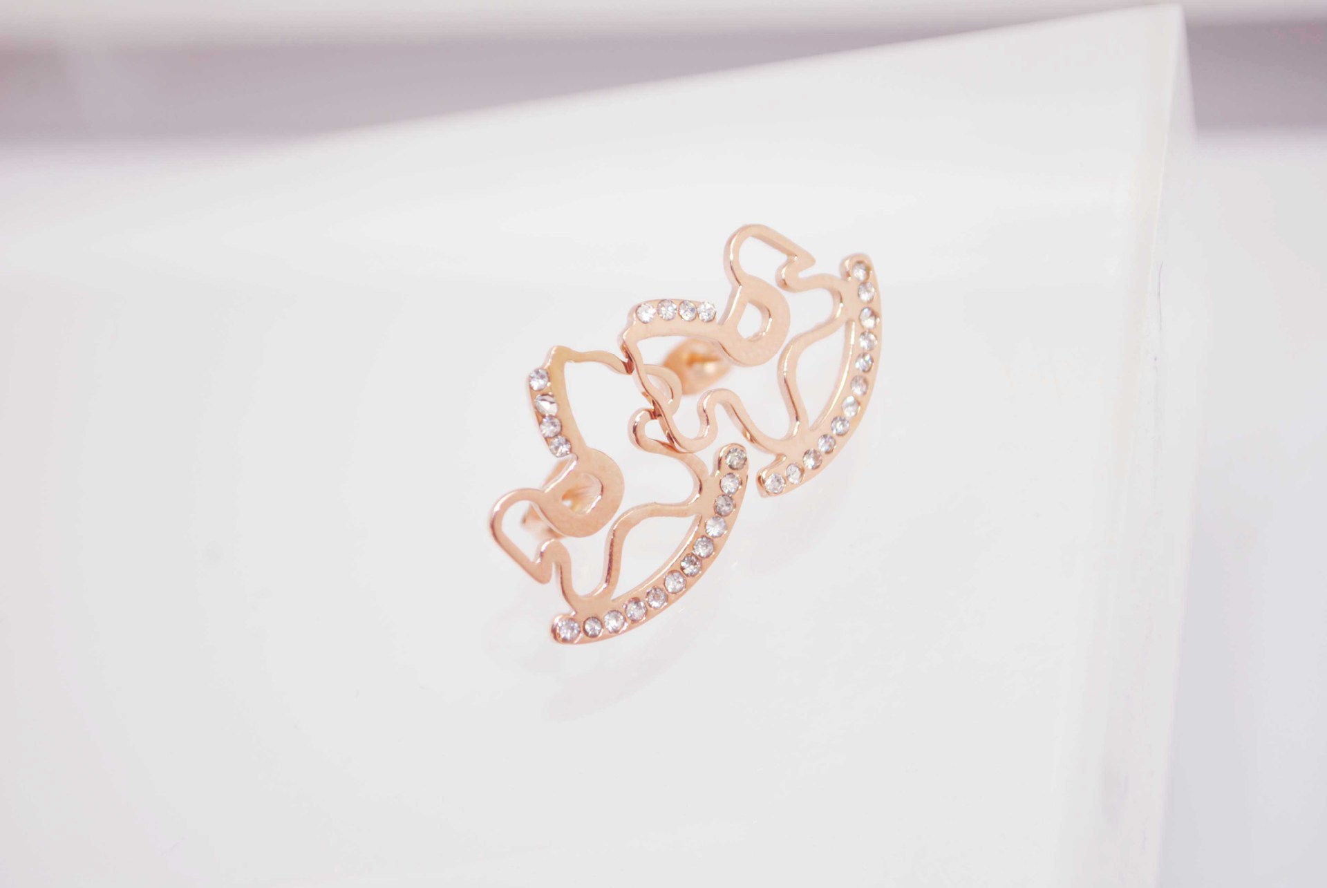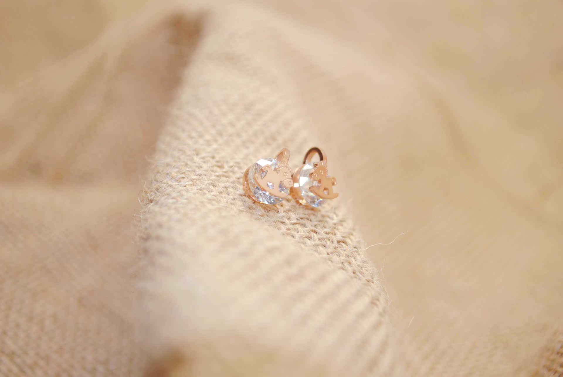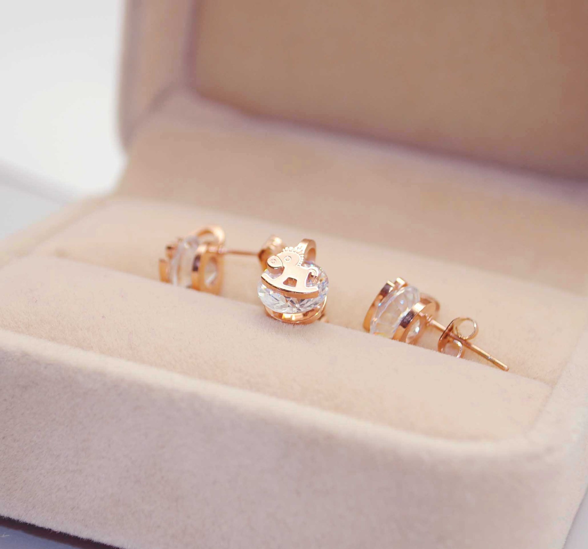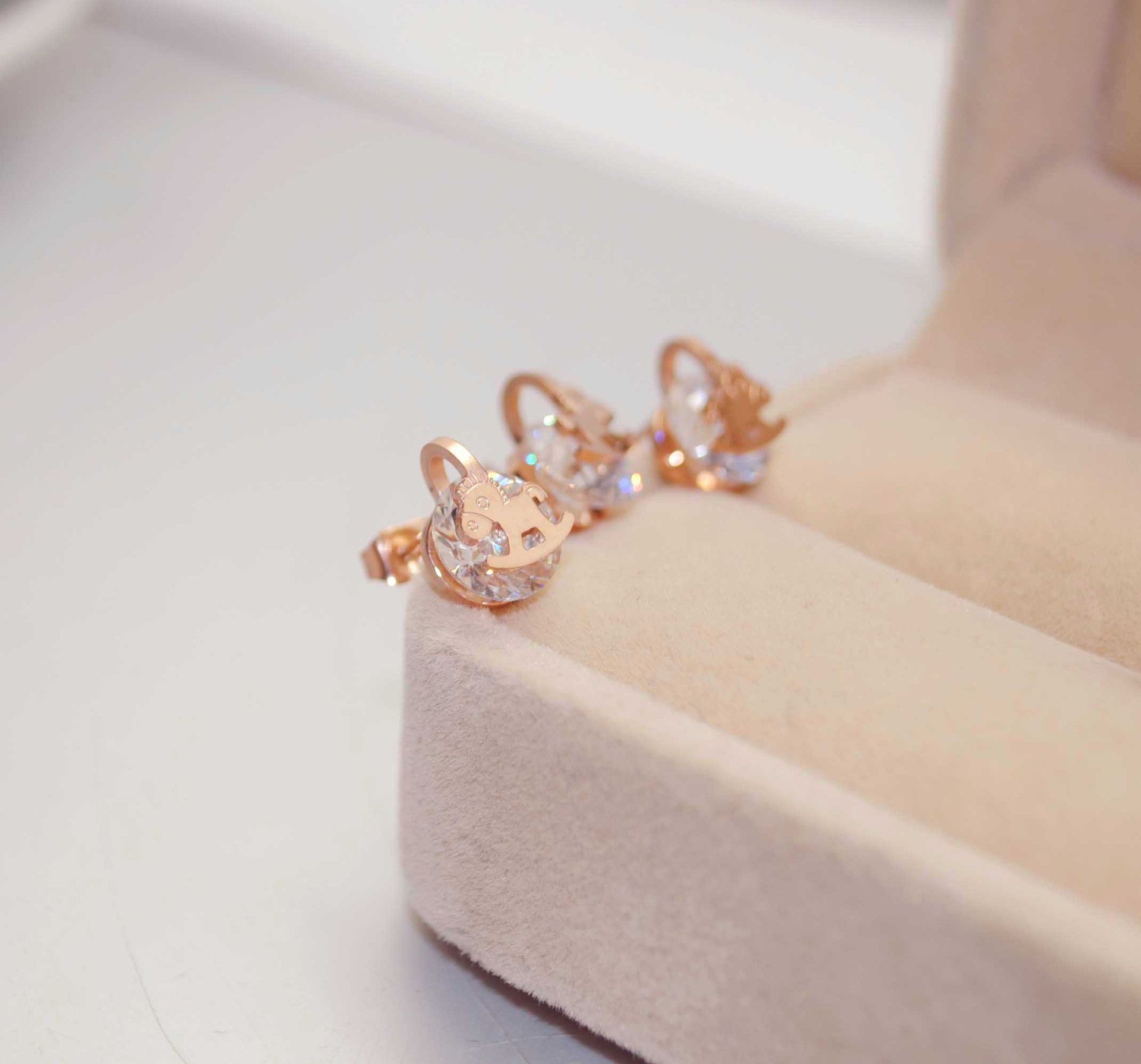 钛钢镀18k 玫瑰金 木马带钻耳钉