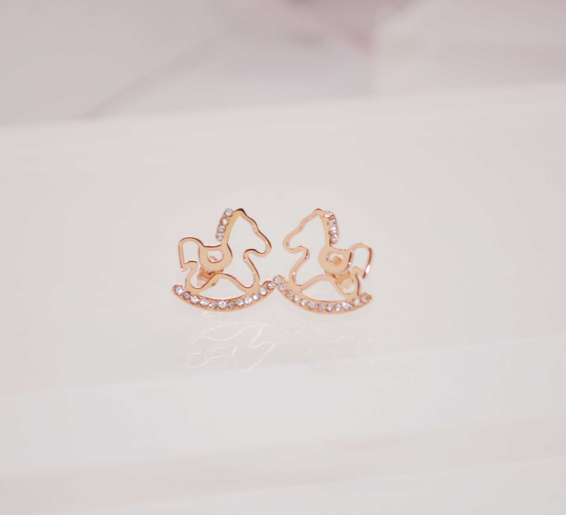 可爱小木马18K玫瑰金耳钉