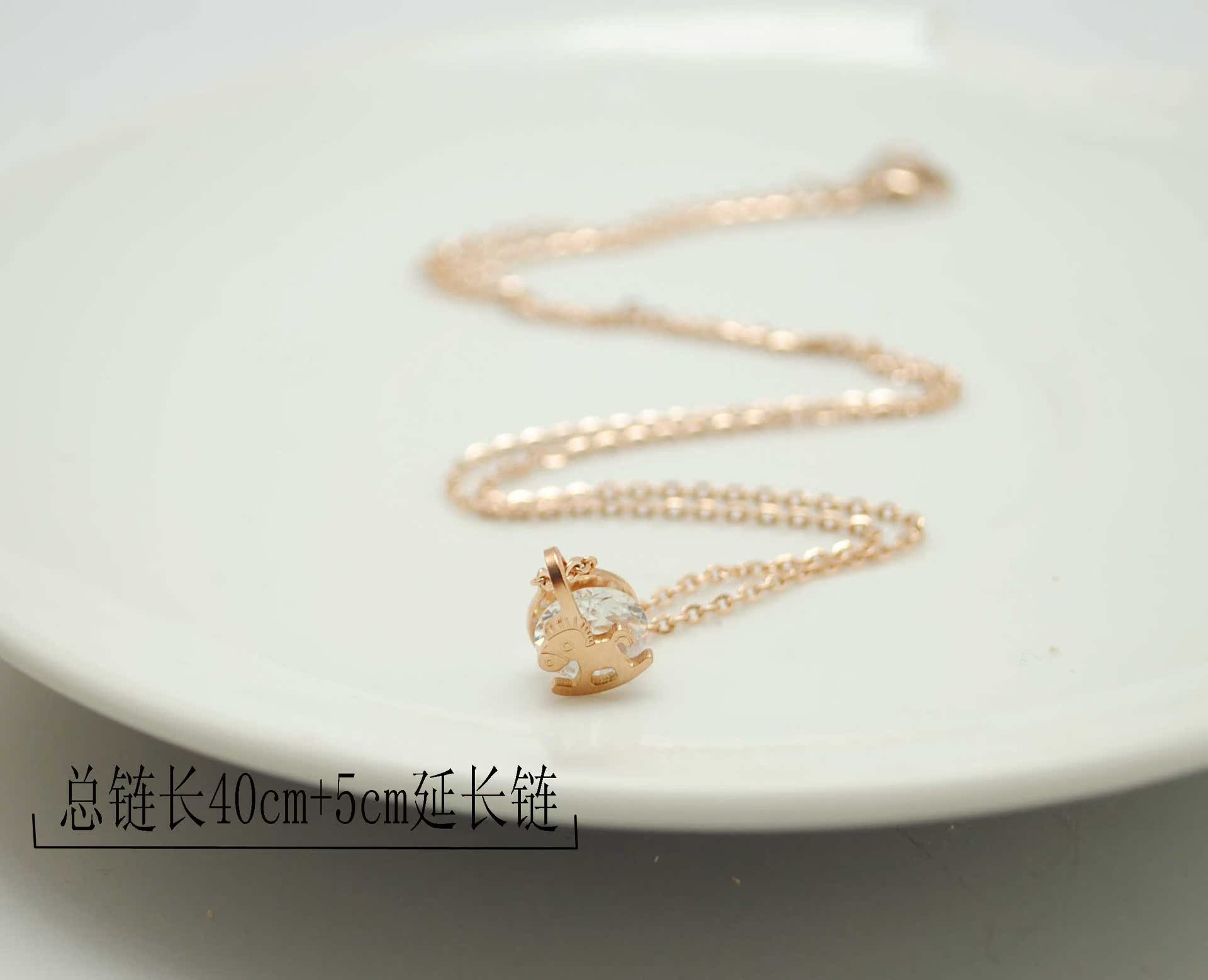 钛钢镀18k金木马带钻项链