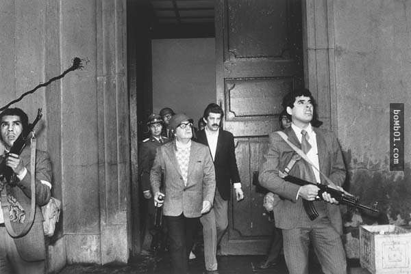 ▼1973:智利民主選舉的總統 Salvador Allende此時在莫內達總統府距死亡僅幾步之遙。