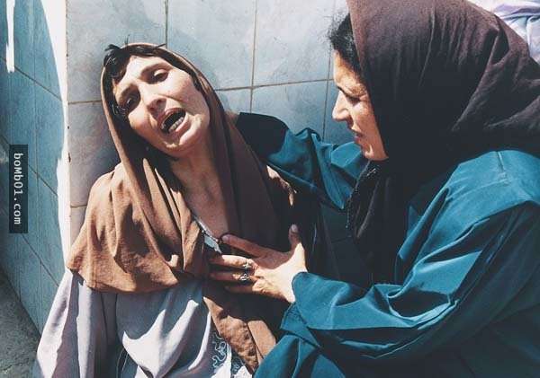 ▼1997:在 Bentalha大屠殺後,一名婦女坐在Zmirli醫院外痛苦。