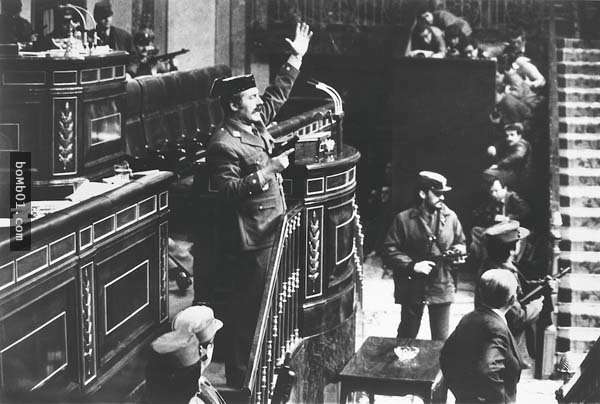 ▼1981:在民防士兵衝進西班牙議會大廳後,陸軍中校Antonio Tejero Molina 命令所有人坐下並保持安靜。攝影:Manuel Perez Barriopedro