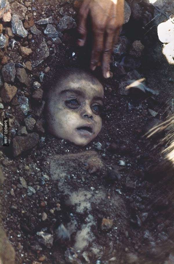 ▼1984:聯合碳化物公司化工工廠毒氣泄漏災難中死亡的兒童。