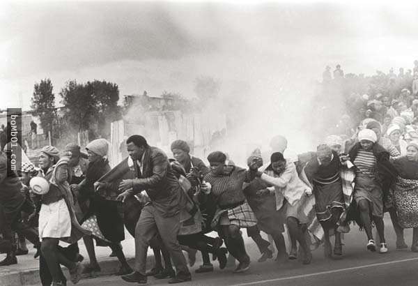 ▼1977:開普敦警察投擲催淚瓦斯驅散抗議拆除他們房屋的當地居民。