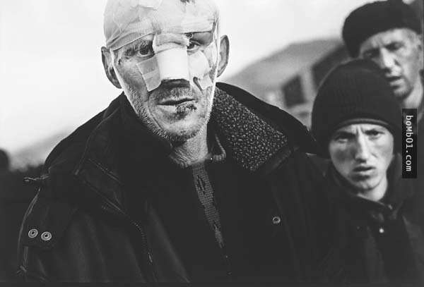 ▼1999:阿爾巴尼亞難民營的一名男子。他們為逃離科索沃戰火而來此。