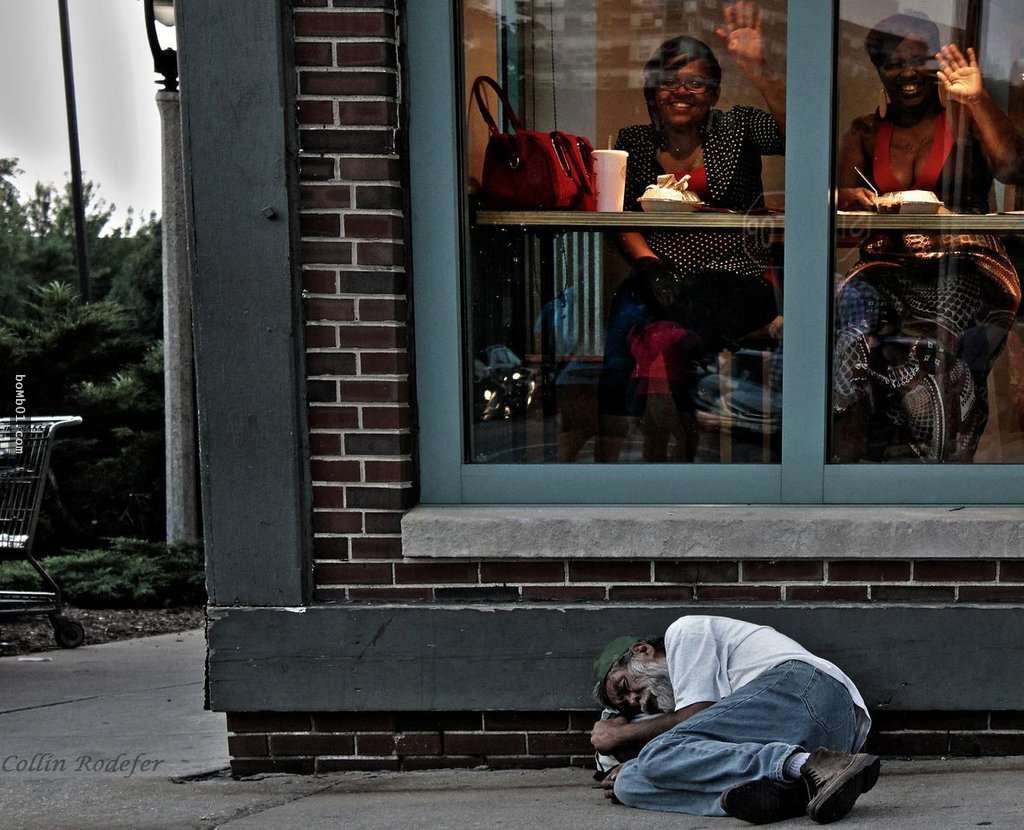 ▼7. 無知是福,流浪漢睡在密爾沃基的一個小餐館外。