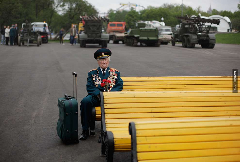 ▼1. 2011年5月9日,是高爾基公園勝利日。來自於白俄羅斯康斯坦丁的86歲二戰老兵坐在莫斯科公園的長椅上,等待他的戰友們的到來。康斯坦丁每年都來到這個地方。今年來的老兵,只有他自己。