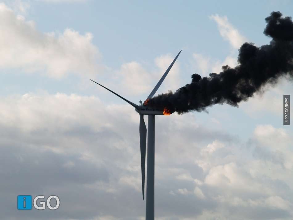 ▼13. 兩個工程師去世時,他們正在著火的風車上。這可能是他們最後的照片。照片攝於2013年10月29日,在荷蘭。