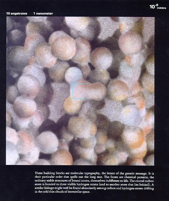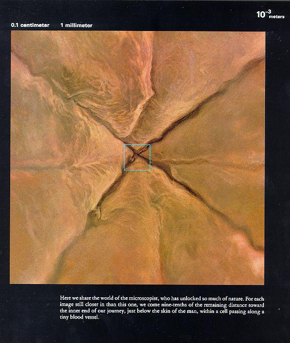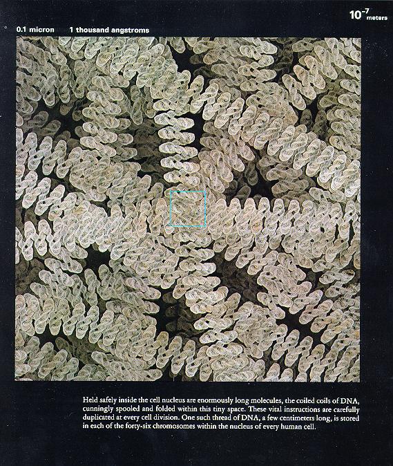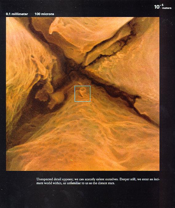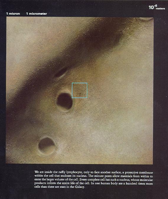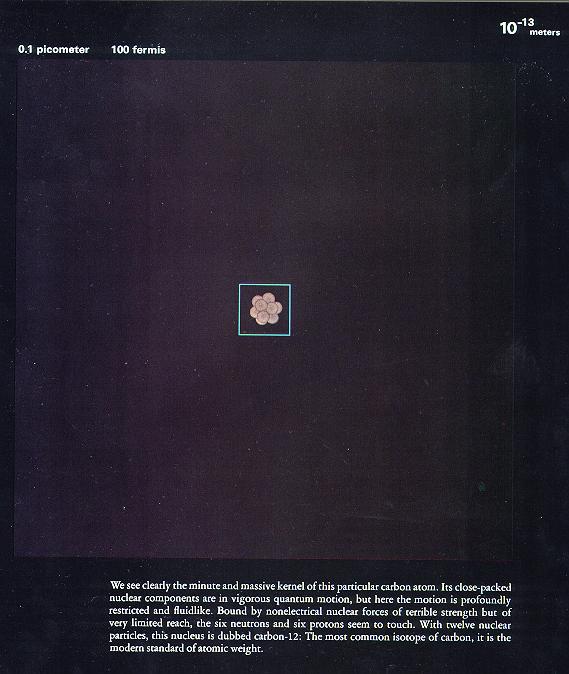 0.1飞米 无语。图片下面的洋文说:一旦我们进入下一个层次,我们将会看到什么,我们又将会知道什么?…… 看完以上图片,你是否感到震撼?我们看组成人体的这些个微粒,和宇宙有什么不同啊?没有什么不同,那几幅表现原子核和电子云的图片如果不告诉我们,把它说成是宇宙星系的图片,我们也不会怀疑。可这就是真实的人体结构。