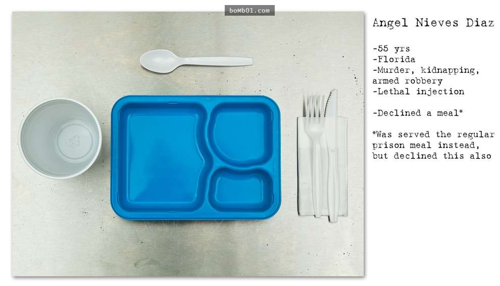 ▼Angel Nieves Diaz,55岁,来自美国佛罗里达州,因谋杀、绑架和持枪抢劫被判死刑。他拒绝向监狱要求他的最后一餐,于是监狱方面提供他监狱平日的膳食,他也拒绝了。