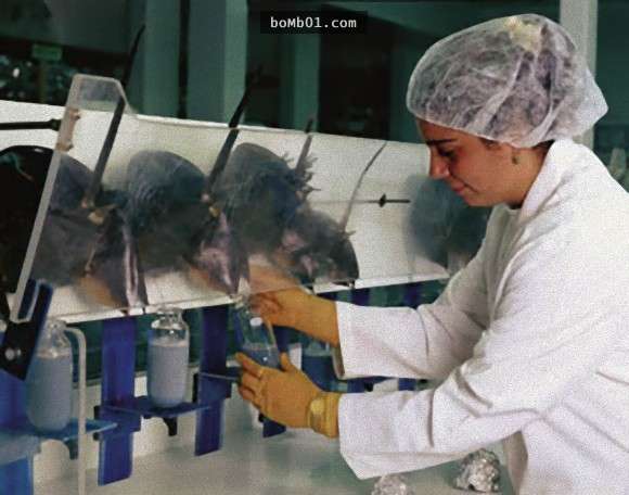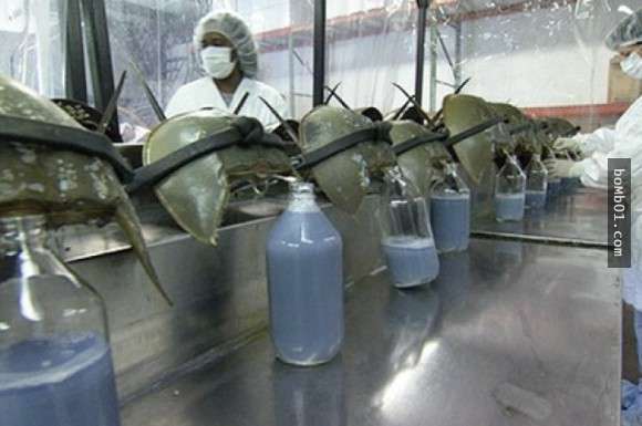 ▼因为这一特别作用,人们捕捉鲎,放血做实验。