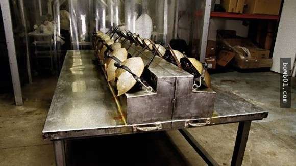 ▼鲎被运送进入实验室,经历残酷的采血过程。