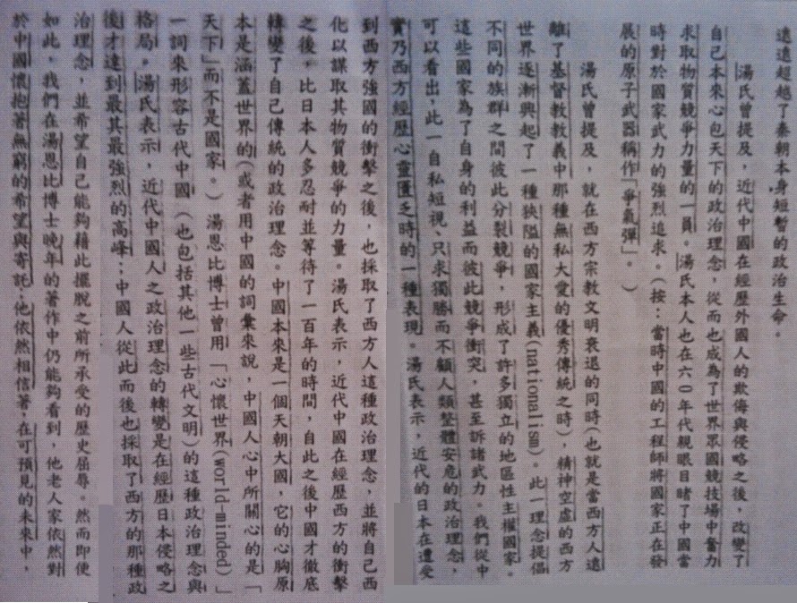 西哲有言:「人而無知一己民族的歷史,終將在劫難逃。」《戰國策》亦云:「前事不忘後事之師。」這是說歷史經驗、前車之鑒,可以導後世遠邪徑、入正途,持久昌盛。然而,西方俗語又言:「歷史不斷重複(History repeats itself)」。眼見人類在歷史上犯同樣的錯誤,一次又一次,不知回頭—這是研究世界史學者的共同心聲。的確,古希臘因個人主義、耽於逸樂而被古羅馬帝國吞併,號稱聖神的古羅馬帝國又因個人主義、道德淪喪而消亡。現代西方社會,遠承希臘、羅馬兩個古文明傳統而發展出令人歎為觀止的物質文明。然而,現代的西方社會再次出現個人主義膨脹、背棄倫理道德的情況—在公元二十一世紀,歷史若再次重蹈覆轍,其結果,並非某個國家的沒落,而是整個人類文明的滅亡,科技與全球化將整個地球融成了一個唇亡齒寒的共同體。