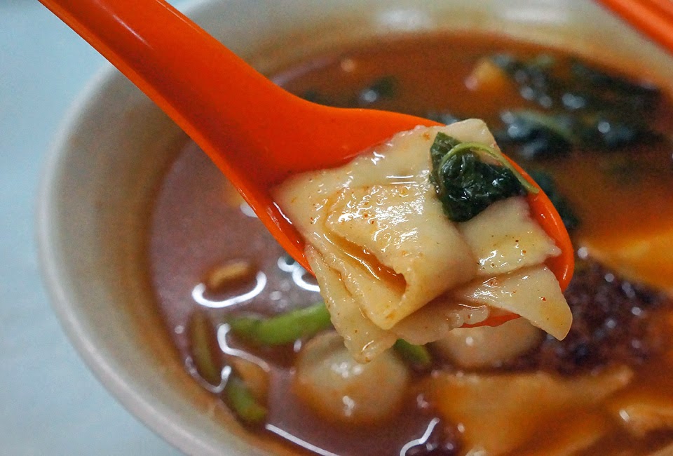 麻辣板面配上的是原味的板面,附带说一句,我吃捏板面的原因还因为我到现在都不知道要怎样以筷子夹起板面的长长面条。 当然,除了捏板面之外,这家店也有卖平常的粗/细/超粗/超细板面。