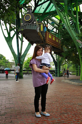 丢丢当森林,飞天火车翱翔铁树林之间。听说晚上的灯饰很漂亮的。