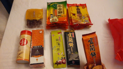就这样,第二天行程结束。送上宜兰战利品照片。金枣,牛舌饼,年轮蛋糕,蜂蜜蛋糕和宜兰饼。