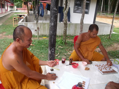 而恩师就是马来亚僧王TOK RAJA(LP KHRON ),TOK RAJA督造的必打有着无以能比的超强威力,目前市价要马币10万以上,是佛牌收藏家乃至佛弟子都想擁有的圣物之一.TOK RAJA将督造必打佛的独特密法传承了给爱徒LP DAM.,而LP DAM督造必打佛的灵验度也有恩师的超强法力,而且市价也不高,所以每次佛牌法会都让泰国的信徒疯狂抢购收藏,而师父督造的MAI KRU权杖也非常有名 |