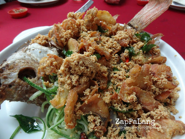 炸鱼片因为切得非常薄,所以经油炸之后,整个都是非常香脆的,配搭奶油粒来吃,真的很香口!鱼片的下面铺了一层黄瓜丝,不是普通的黄瓜丝那么简单哦,这些都是经过腌制的,酸酸甜甜又爽脆的黄瓜丝,配搭油炸的鱼片可以调和油腻的感觉。单单一道菜就可以充分表现出店家的用心了。
