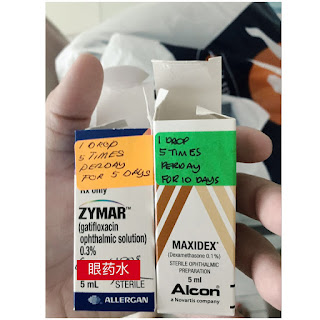 正式轮到我了,躺在手术床上然后医生开始叫我放松,但就是紧张到不行!然后就有一个机器在我的眼睛上方,医生用那台机器帮我放上Ring,主要确保眼睛不会闭上和眨眼,然后镭射手术进行了,首先会将眼睛外面那层(貌似眼膜)开一半,然后开始镭射,整个镭射的过程都会看不到(不用紧张!)只看到红色蓝色青色模模糊糊的光线,然后确保你的focus在一个定点,医生会指导你,会听到机器吱吱吱的声音和微微的烧焦味,整个过程大约10分钟(要看你何不合作咯,不合作就是自己受苦),结束后将眼膜盖上,滴上药水,完成。