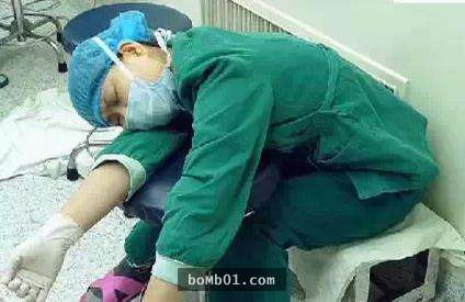 ▼6. 在两个手术的间隔时间,一位护理师累到坐下来就直接睡著了…
