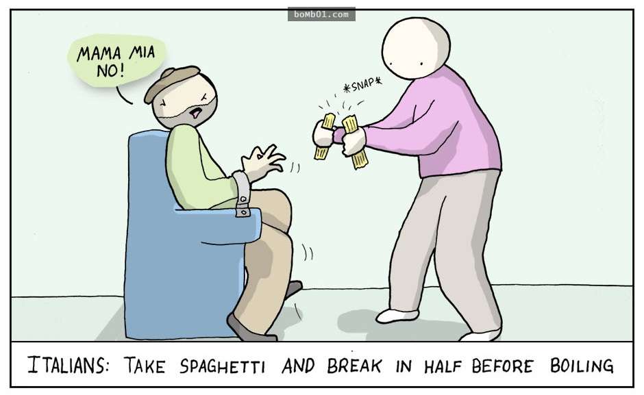 ▼9. 在义大利人面前把义大利面掰断成两半。义大利人:“不!”