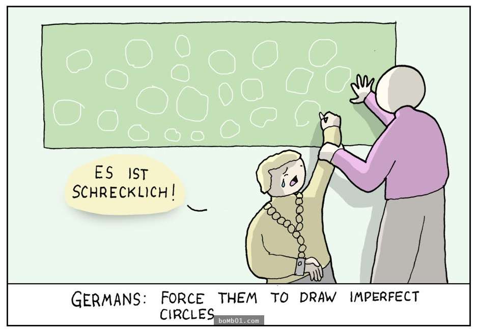 ▼5. 强迫严谨的德国人画出一个不完美的圆圈。(典型完美主义者都无法接受的不完美。)