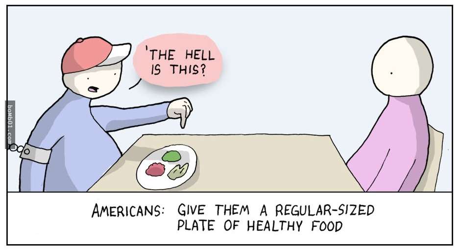 ▼6. 给美国人吃正常分量的健康食材。(还是快餐和大份的食物才好吃。)