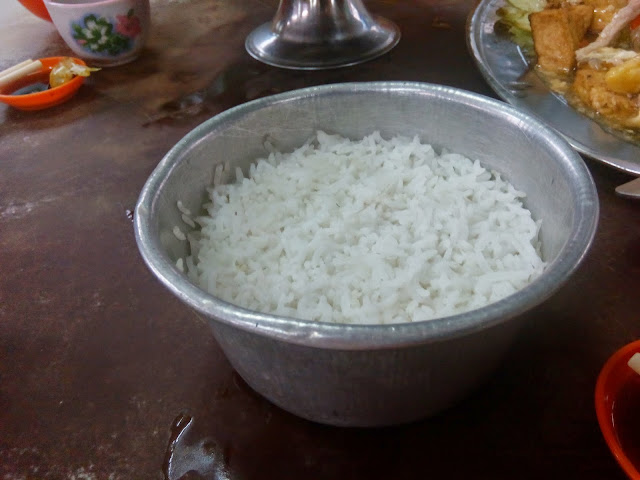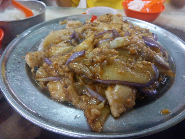 茄子鱼滑是我喜欢的一道菜式。茄子吸入了酱料的咸味,加上特制的鱼滑,味道很好。有水气包裹着的一粒粒蒸饭,配上好味的茄子,一碗碗的蒸饭就这样下肚了。这个就是欧巴喜欢蒸饭的原因了。