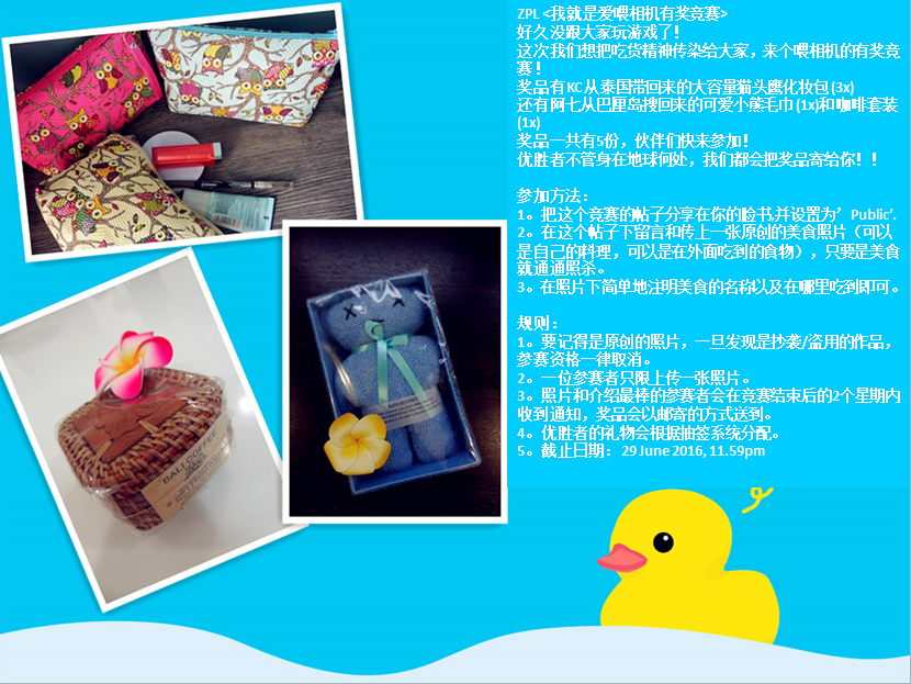 ZPL <我就是爱喂相机有奖竞赛>。。。赶快到我们的FB专页去参加游戏吧!