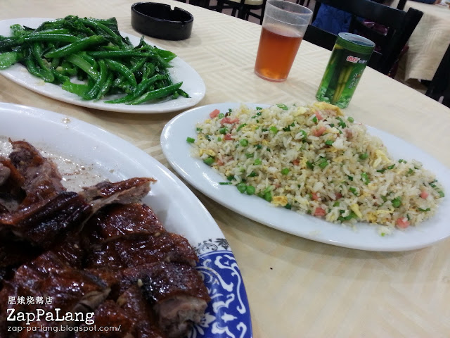 在工作完后的晚餐时间,同事把我带到了很靠近酒店的这家肥娥烧鹅,据说这家餐厅是24小时营业的,平日的客人很多,而且是本地客居多,店门口挂着的烧鹅油光滑亮地,看起来很好吃。我们只有三个人,所以就点了简单的烧鹅,烧肉和炒菜,每样菜的调味其实都和我们这里的中餐调味很像,难怪很少听到来这里的朋友会有水土不服,吃不惯食物的问题,至少我是没有,哈哈!