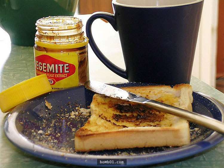 ▼5. 澳洲早餐,最常见的就是Vegemite酵母酱,就连澳洲热爱旅行的人也常常会放一罐在背包。它其实和Marmite酱是同样的东西,只是澳洲人还是特爱自家产的Vegemite,而且最喜欢涂在吐司上当早餐吃。