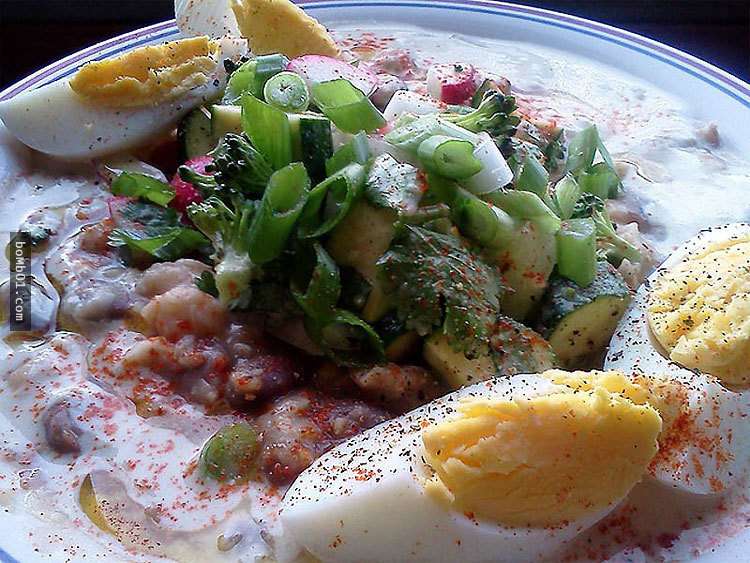 ▼20. 巴勒斯坦早餐,馅饼,是一种未发酵的面包,然后放入锅中油炸而成。然后在陆陆续续将蔬菜、奶油、酸辣酱添加进去,吃起来特别爽口。还可以将它卷起来,泡在茶中,然后再拿起来吃喔!