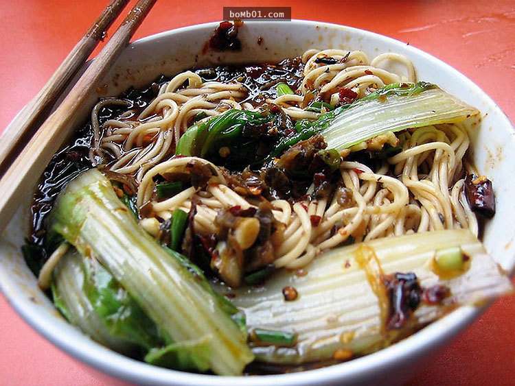 ▼18. 中国早餐,加了青菜肉酱的面条,也可以当作午餐晚餐,总之,餐餐合适。