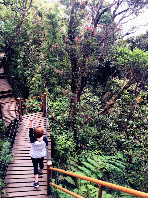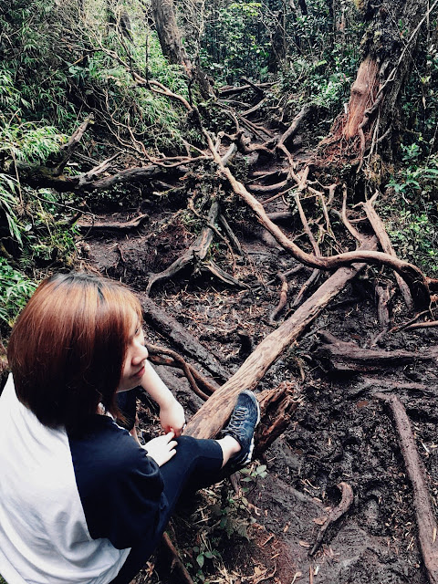 蜜蜂园,有机蔬果园,薰衣草园,玫瑰园,蝴蝶园,仙人掌园等等的胜地都归类于必去景点之一。 大家呢,常观光金马伦的哪些景点? 这回来到金马伦,熟悉耳闻的必去景点我都搁在一旁,一心想要探索Mossy Forest的奥秘之处。 苔藓森林位于彭亨及霹雳的分界线。 长篇大论以后也还没看见任何实照,大家有没有很期待像电影情节常目睹的神秘森林长什么样子? 由于到访的游客数量与日俱增,有关当局特地建立了一座通往青苔森林的步道, 好让游客可以在森林一带绕圈,置身于绿树环抱中,销魂呀~ 到了步道的尾端,有意继续健行的游客可以穿走偏佈泥巴的路径进入深山探秘。 环境潮湿,海拔位置高,造就了今天名副其实的仙境 《苔藓森林》。如果你问我大马有什么隐藏景点值得探索,我会毫不犹豫地回答:青苔森林。 每棵树上都寄生满了绿茸茸的苔藓,在家中看见鱼缸里的青苔觉得有点祸心,殊不知Mossy Forest 尽然可以让人如此养眼。 浓密的青苔泛着绿光,手掌支撑着肌体向上爬,会不经意地触碰到四周的青苔,滑滑粘粘的感觉,仿佛自己就触摸着一层厚厚的柔软毯子;不过我还是小心翼翼,以免一个不小心摔跤,也确保大自然生态不被破坏。 森林内大部分的青苔仍然脆弱,尚若旅客不好好呵护, 这稀有的景点将遭受威胁。 很多苔藓因为被踩在脚底已不禁成了泥泞。 建议大家穿上朔料质体的鞋子健行,要不然深陷于泥土中,就像我这只被树根卡住的鞋子,一发不可收拾,烂泥及土堆满在鞋子边缘。我还在头疼着要怎么清理, 哈哈哈。