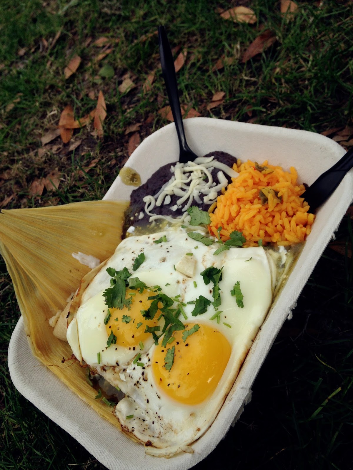 陌生的食物,统统都禁不住给点了; Yellow Corn Pattie with Mozarella Cheese;属于拉丁美洲人的一种小食。 一阵的玉米香扑鼻,还有着一层浓厚的芝士融化在嘴里。吃多了以后,觉得有些腻。 墨西哥餐,也是其中我很喜欢的一道街头小吃。味道形容不来,就因为新奇 而且第一次接触。 整体来说味道还可以接受。 馋嘴的我们在家已经吃过早餐,还是忍不住的想要统统都给本大爷来一份的冲动,咱们说好的不花钱泡汤了。 我们走了一趟农民市场就花了60元美金.....钱包挖空。