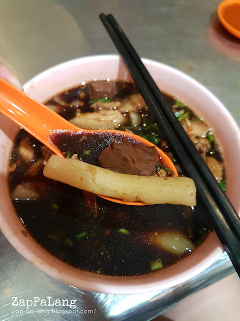 在权记正对面街的天皇鸡脚粿条汤也是四宝之一,这里的粿条汤汤头很清澈,是一碗很清淡普通的粿条汤,不过真的没什么特别。我没选鸡脚不过选了卤鸡翅和卤蛋来代替,鸡翅的皮是卤到会粘嘴唇的那种程度,卤汁属于那种有很浓酱油跟糖味的那种,不过肉没入味,我有点失望。