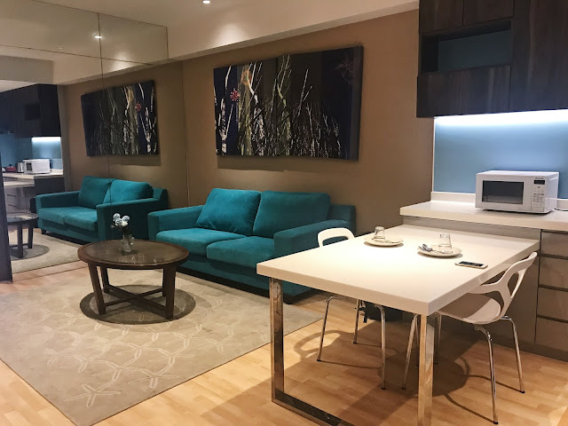 Doris Studio 的单位照片吸引了我,更重要的是有厨房噢!费了九牛二虎之力我终于找到一个餐具和烹饪用品齐全的酒店式公寓!烘炉,冰箱,碗碟,电炉,平锅都有。 翻开google map 显示地点就位于吉隆坡市中心Pudu 而已,从我家到Doris Studio大约15-20分钟,很方便。偷偷告诉你Doris Studio的房价也在我预算内,RM200以下就能入住高级的酒店公寓,捡到宝了! Host & Guest的沟通做足功夫,Check-In 手续简单且方便。一打开房门我就吓着了,房里没有床。 原来房中有房,客厅和卧室由一扇门隔开。心想果然没有选错套房,为自己挑选的套房暗爽了一下。一来煮饭的时候油烟也不会深入卧室里。客厅和卧室分隔,待客也会更周到。 套房面积64平方米, 虽说是Studio却提供了充足的活动空间。这房子比我想象中得大! King Size Bed 铺上粉红色床单,床单颜色很少女系叻。情侣住的话,顿时为房子里添加了几分浪漫感。 现代化浴室设计使房间整体更广阔。 透明玻璃窗外的市中心风景。Check In后,咱们从家里把食材带过来准备今晚的晚餐! 一开始我和男友打算自己煮两人份的晚餐,食材却买太多了。临时改变主意让屋子里热闹些,我们就办了一场聚会邀请了数位朋友到来。 我俩手忙脚乱地准备晚餐,多亏朋友们的帮忙,我们的晚餐才能顺利上桌。卖相看起来还不错,味道呢?当然也不差呀! 吃过晚餐,咱们上顶楼吹吹风。旁晚下过了雨,特别凉快。顶楼的无边游泳池,前方没有任何高楼大厦的阻挡,可眺望KL全景风光。不必去Fine Dining都可享受这夜景,我的生日还有什么不满足呢? 除了无边游泳池,Gym Room,Steam和Sauna 也在顶楼。住在Doris Studio的 Guest都可无条件享受这里的设施。