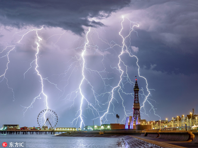 2018年11月15日报道(具体拍摄时间不详),2018年年度天气摄影师大赛作品公布,由摄影师史蒂芬-切特利(Stephen Cheatley)拍摄的“Electric Blackpool”照片,击败了4000多幅参赛作品,获得总冠军。史蒂芬-切特利的作品展现的是英国城市黑潭电闪雷鸣的画面。