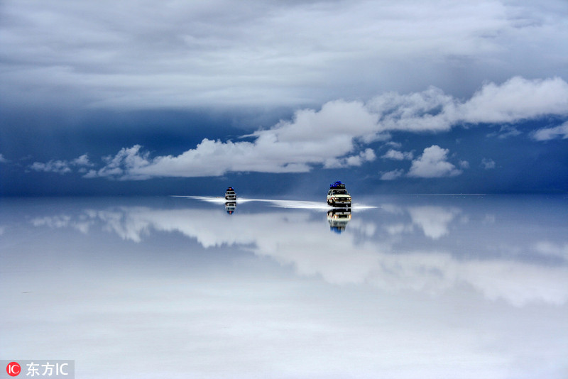 的确是车。 这是旅人在玻利维亚Uyuni 盐田上用的四轮驱动。
