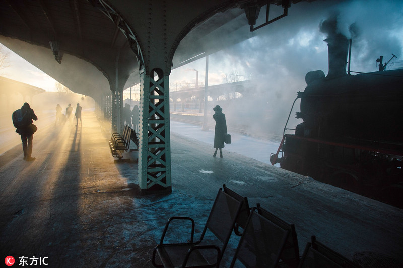 清晨,充满雾气的老车站