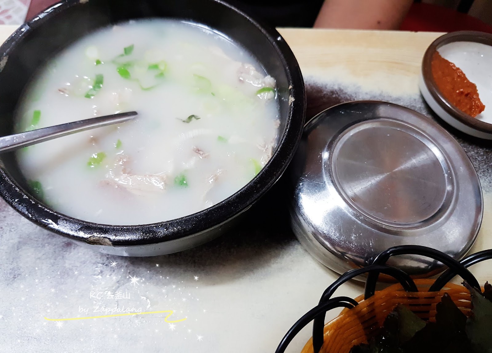 所谓的猪肉汤饭就是用长时间煮猪肉的汤为主,加入米饭和软嫩的猪肉的食物,据说这是以前韩战时的难民们吃的食物,奶白色的汤底其实很清淡,难得的是完全没有猪肉的腥味。我个人认为吃猪肉汤饭,韭菜真的不能少,韭菜的独特味道把整体提升到另个层次。血肠我没有很爱,不过它的口感不错,放在汤饭里头很好嚼。