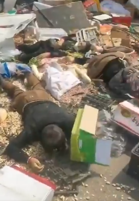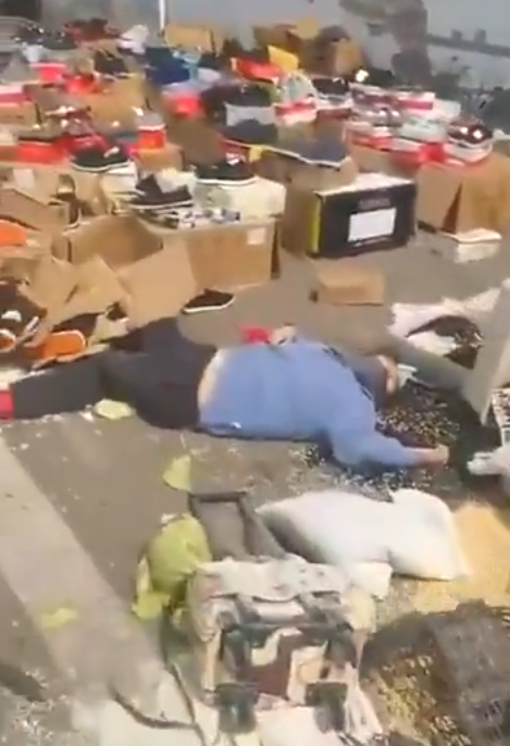 從X上流傳的多則影片可以看到,1輛鏟土機在市集內來回多次輾壓攤位,有數名攤販倒地不起生死不明,一旁群眾見狀連忙拿起手邊物品丟向駕駛,最終把開鏟土機的男子拖下來圍毆。