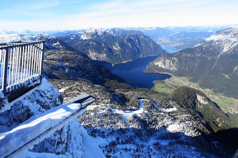 第3站 ~ 五指山 5 Fingers 当天行程表是在Gosausee 高萨湖和五指山 5 Fingers里2选1!由于当天天气好转就决定选了5 Fingers。从Hallstatt Lahn搭Postbus 543号公车前往对岸的Obertraun Fereindoft站下车,车程约10m。然后步行200米到民宿放下行李,然后再回到Obertraun Fereindoft站搭Postbus 543号公车前往5 Fingers,车程约15 m。 ![]() ![]() 到了5 fingers山脚便排队买好缆车票。那时没想太多上面的状况,就跟着人群走进缆车。当缆车行走到一定高度,我看见白茫茫的一片......哇!不得了是雪地,还飘着雪,山上的松树林都结霜!